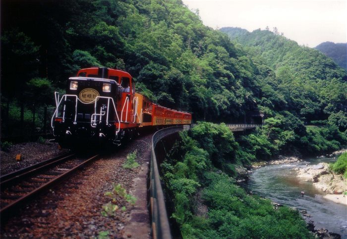 속도 전에 내밀려 대부분의 증기기관차가 고철덩어리로 변한 지금, 아라시야마에서는 추억의 열차를 탈 수 있습니다. 무더운 여름, 시원한 아라시야마 대나무 숲과 계곡을 가로지르면 사락사락 선선한 바람이 다가와 더위를 식혀줍니다. 오래된 증기기관차의 정겨운 덜컹거림과 시골풍경이 옛추억을 자극해 줍니다.